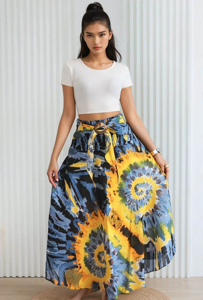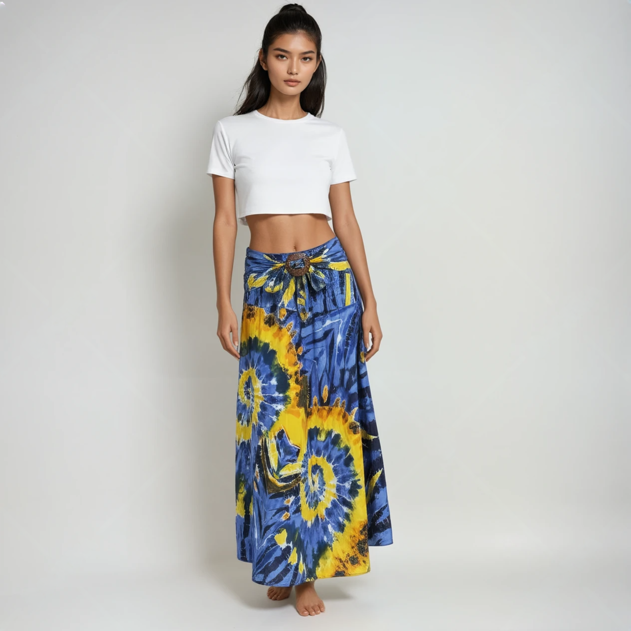 Lightweight, relaxed, and comfortable yet elegant long, flowy, bohemian-style skirt with elasticated waist. This skirt can be converted and worn as a haulter-neck dress.