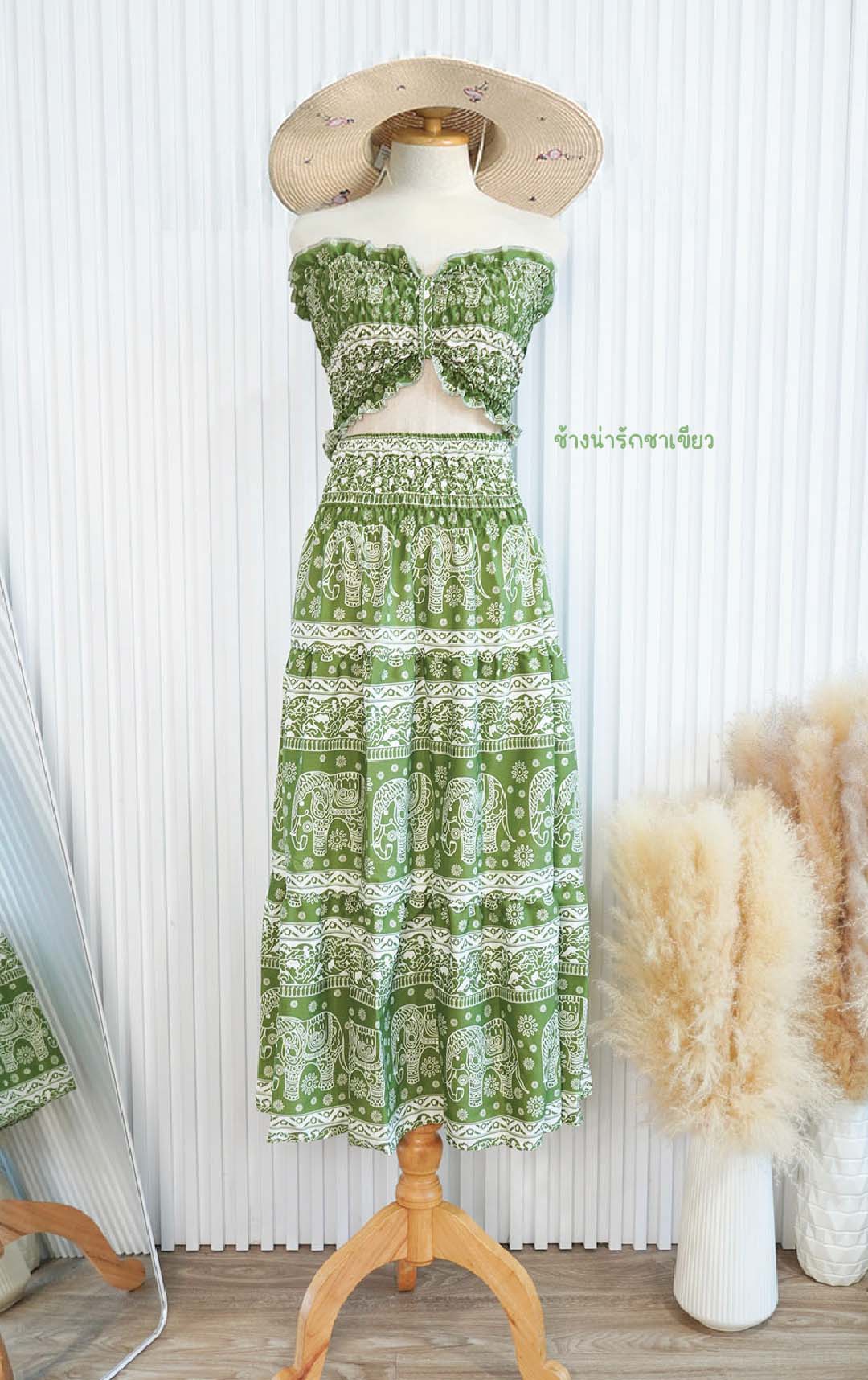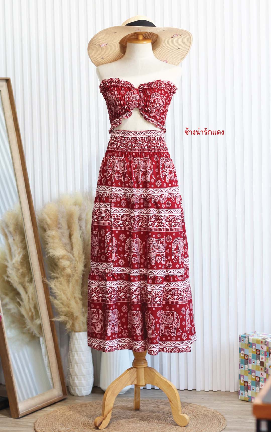 Loose fitting A-Line skirt with elasticated waist for ideal comfort. Elasticated bow-tie top fits most body types.