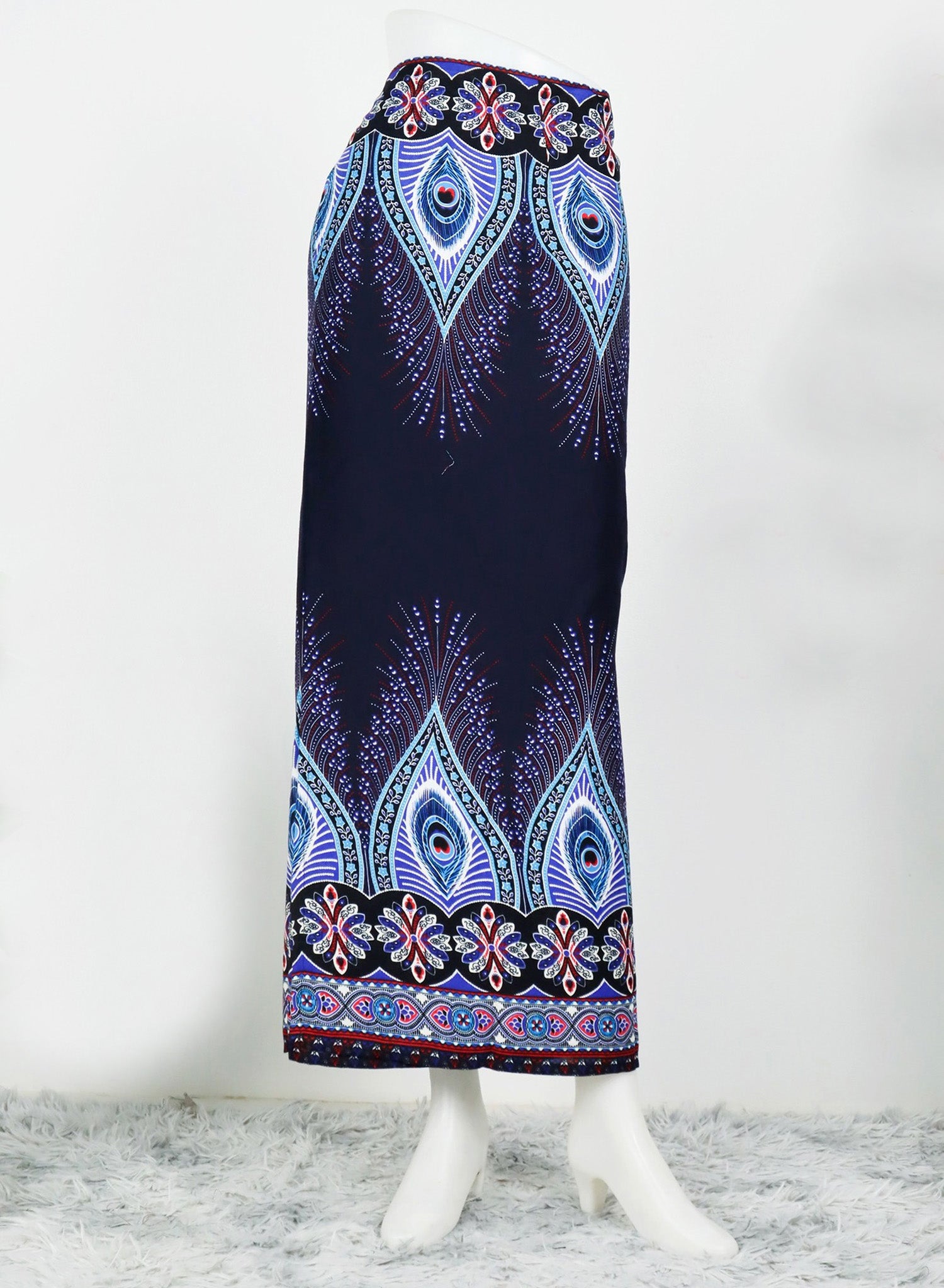 Wrap around sarong skirt with tie strings.